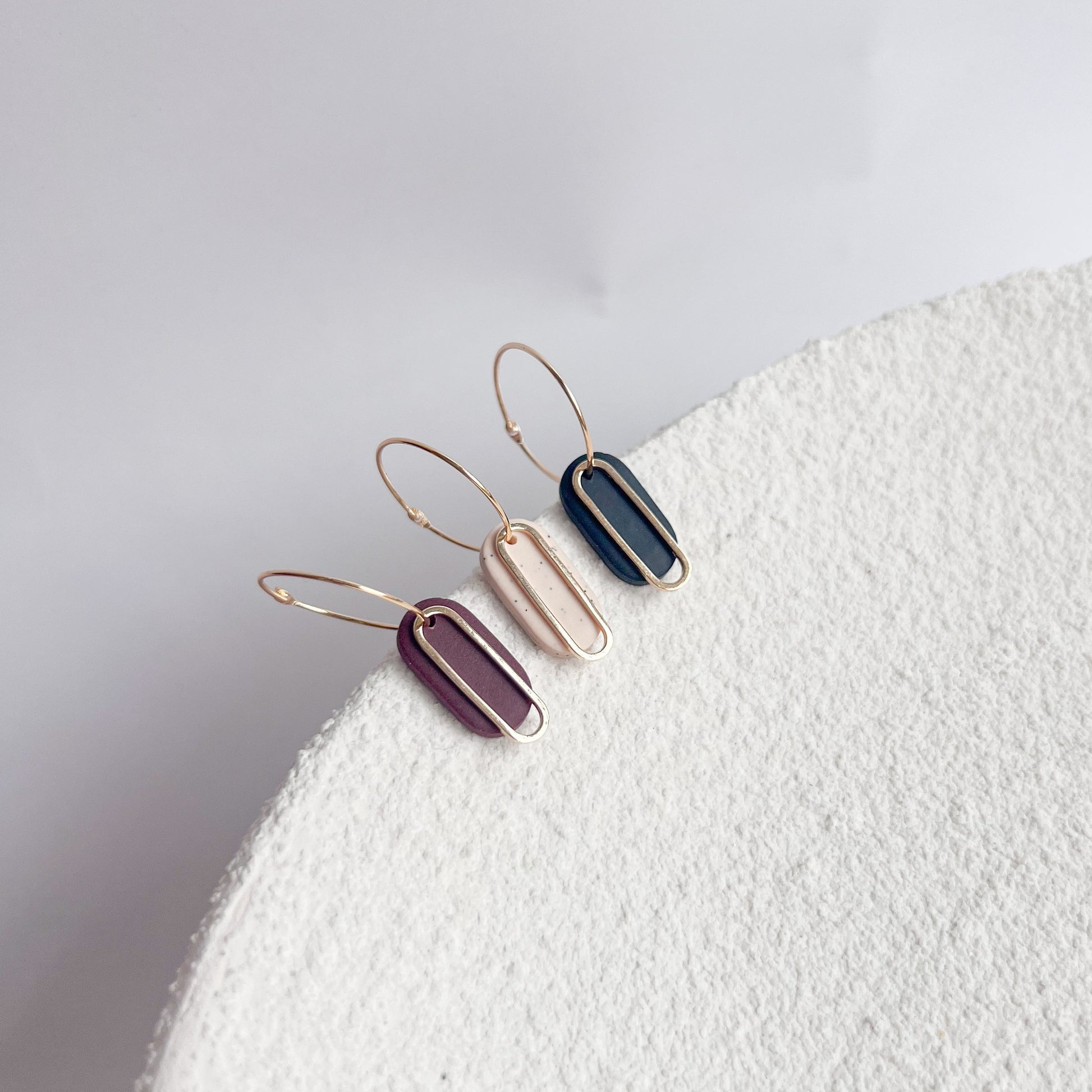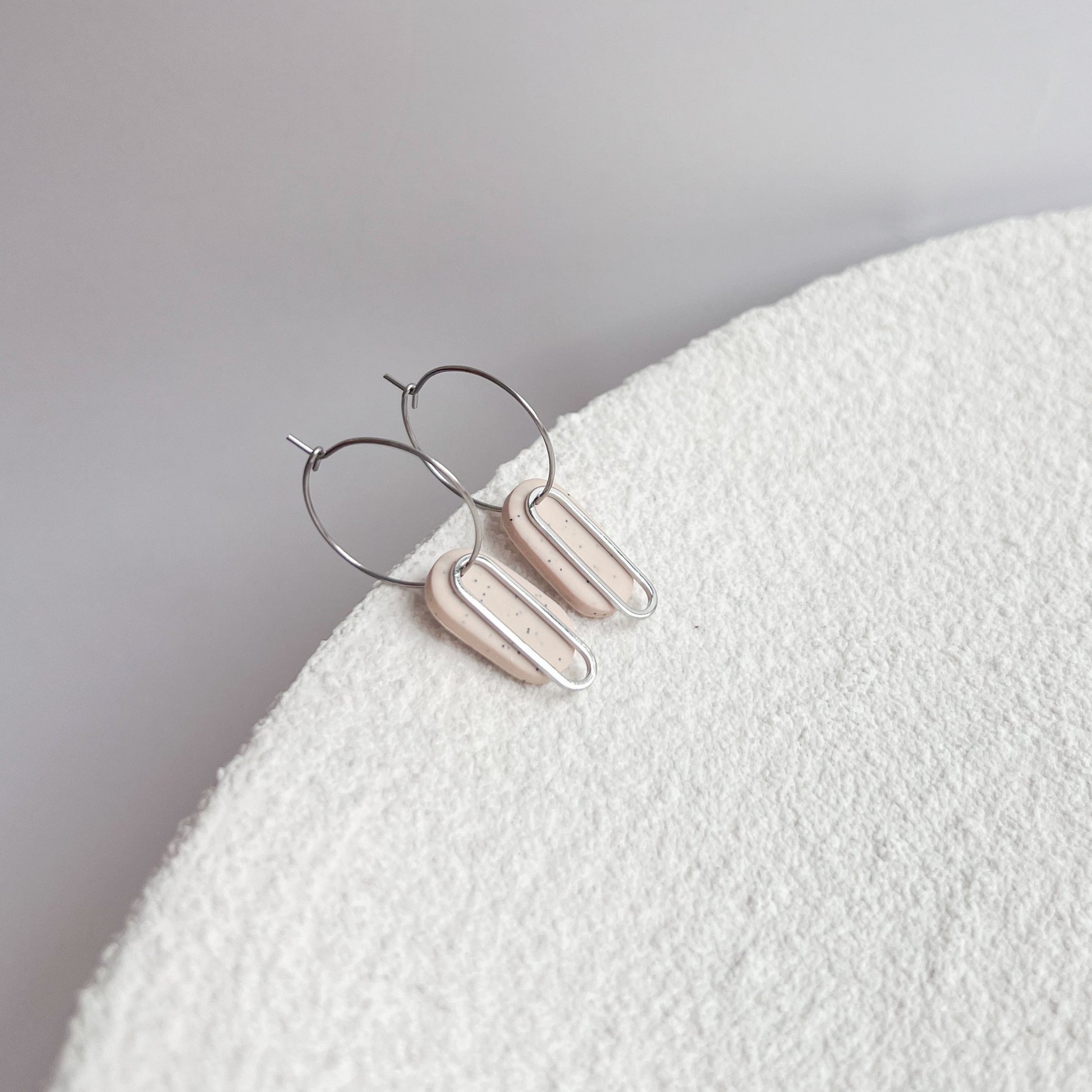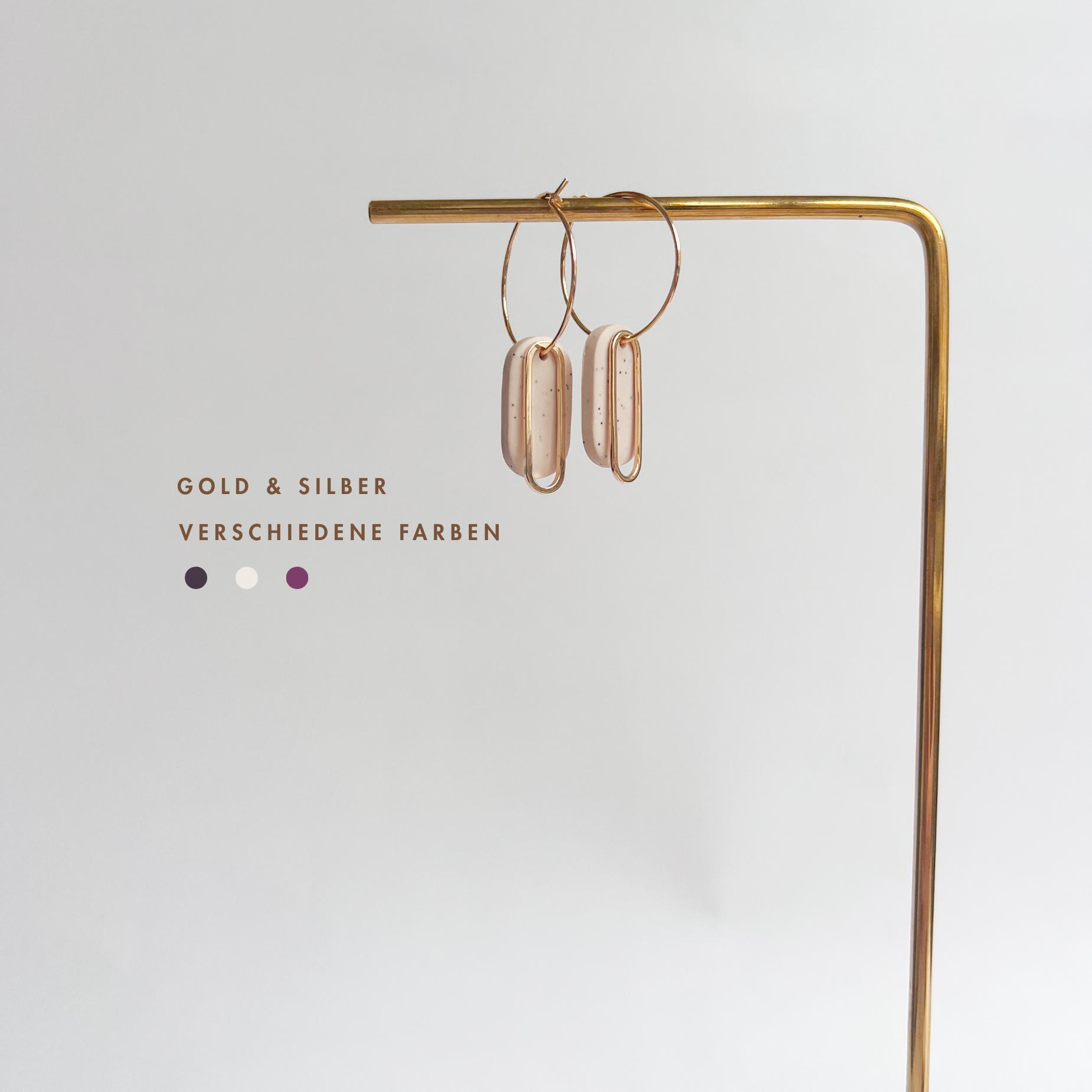 Handgemachte Ohrringe mit ovalem Anhänger - Vergoldete Creolen aus Edelstahl in Gold oder Silber in zarten erdigen Farben. Die vergoldeten Edelstahl Creolen bilden die hochwertige Basis der Ohrringe. Sie sind robust, langlebig und angenehm leicht zu tragen.
