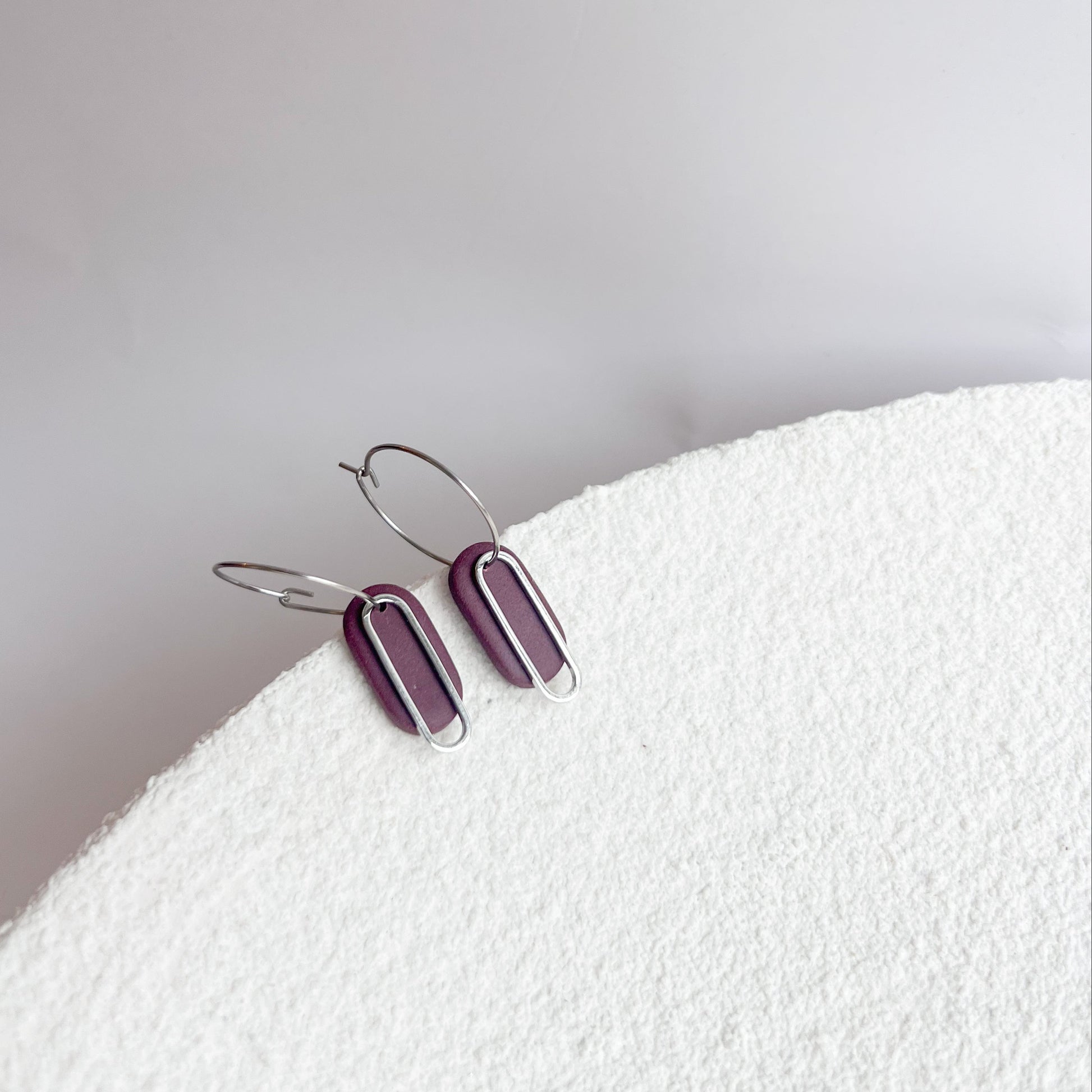 Die Burgundy- und Beere-Töne setzen einen wunderschönen Kontrast zu hellen, luftigen Stoffen. Kombiniere die Ohrringe zu fließenden Kleidern in Creme, Weiß oder Rosé für einen femininen Look. Besonders modern wirken sie auch zu Leinenblusen, hellen Jeans oder monochromen Outfits in Beige.